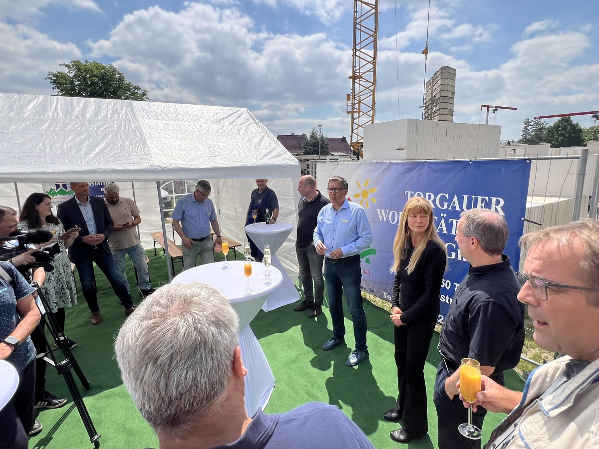 Mit der feierlichen Grundsteinlegung am 04.06.2025 wurde der Startschuss für den Bau des neuen Wohngebäudes am Strandbadweg 21c gegeben. In Anwesenheit von Vertretern der Stadt, beteiligten Planungs- und Bauunternehmen sowie Mitarbeitenden der Torgauer Wohnstätten GmbH wurde symbolisch der Grundstein für zwölf weitere barrierearme Wohnungen gelegt.